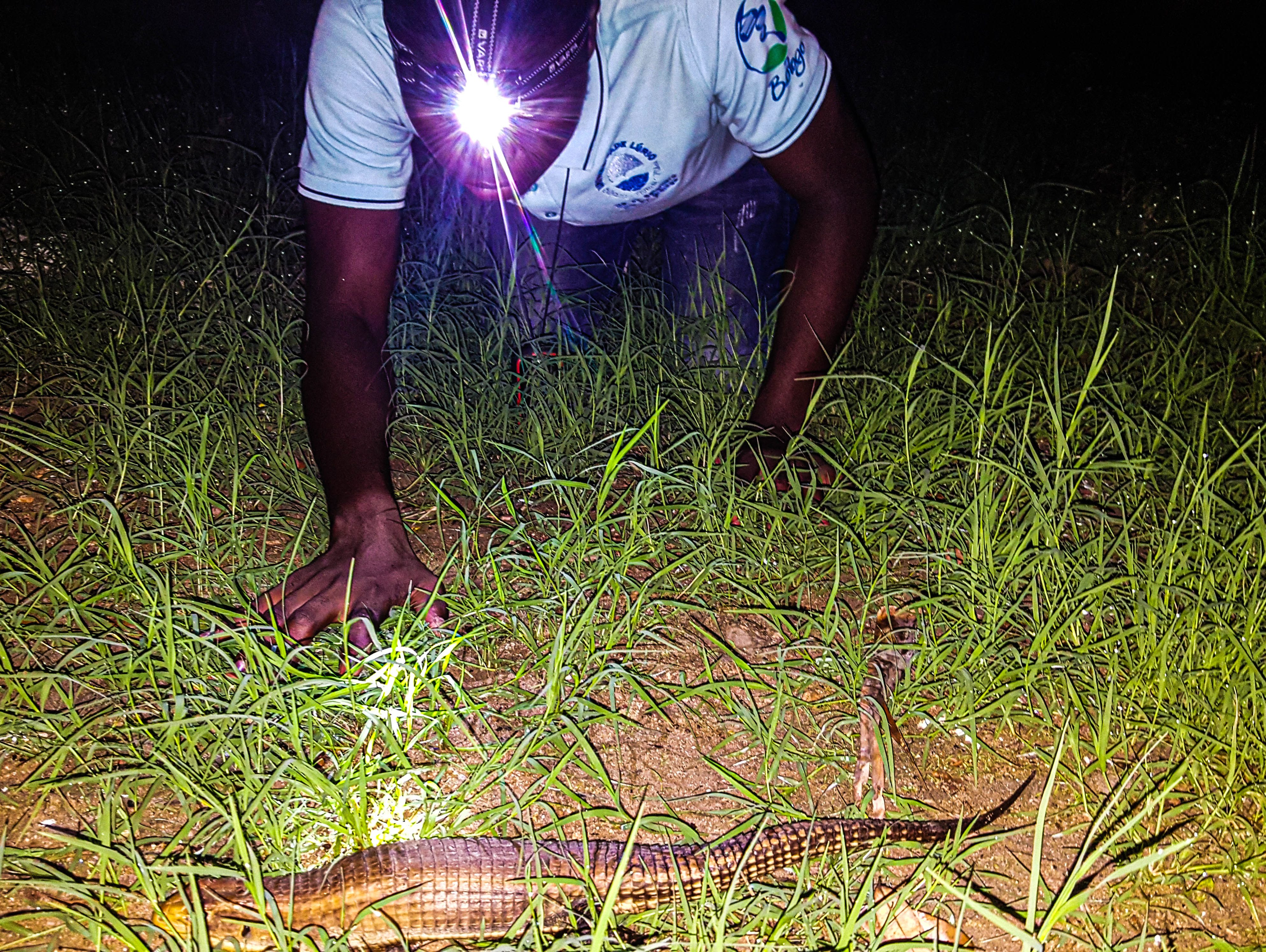 While our traps are catching frogs, lizards and snakes, we actively search for species by lifting rocks or digging.